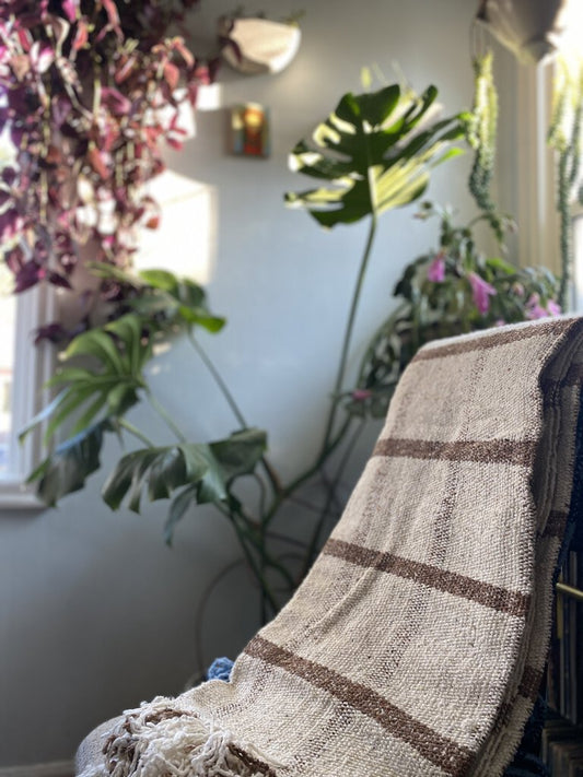 Sundream - Cream with Coffee Plaid Sustainable Throw Blanket