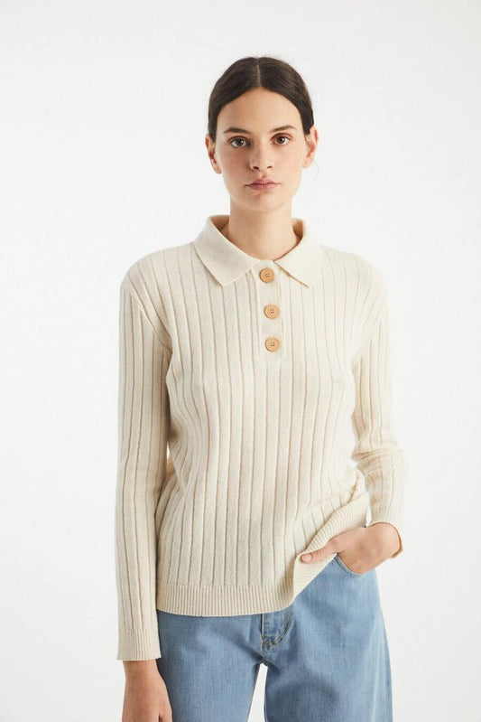 Rita Row - Cream Cashmere-blend Knit Polo - Large