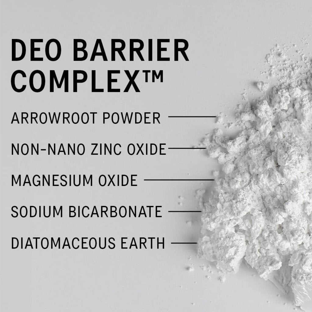Ingredients: Maranta Arundinacea Root Powder, Helianthus Annuus (Sunflower) Seed Oil, Sodium Bicarbonate, Prunus Armeniaca (Apricot) Kernel Oil, Caprylic/Capric Triglyceride, Butyrospermum Parkii (Shea) Butter, Magnesium Oxide, Diatomaceous Earth, Parfum (Fragrance)**, Silica, Glyceryl Stearate, Glyceryl Behenate, Zinc Oxide, Limonene*, Citrus Limon (Lemon) Peel Oil*, Hydrogenated Castor Oil, Calendula Officinalis Flower, Juniperus Virginiana Oil*, Pinene*, Tocopherol, Citrus Aurantium Dulcis (Orange) Peel Oil*, Linalyl Acetate*, Linalool*, Citrus Aurantium Bergamia (Bergamot) Peel Oil*, Eucalyptus Globulus Leaf Oil*, Geraniol*, Beta-Caryophyllene*, Anethole*, Citral*, Terpineol*, Geranyl Acetate*, Cananga Odorata Flower Extract*, Pelargonium Graveolens Oil*, Terpinolene*, Alpha-Terpinene*, Citronellol*, Farnesol* *Naturally occurring allergens **Made with essential oils and fragrance compounds at safe inclusion levels, compliant to global IFRA standards