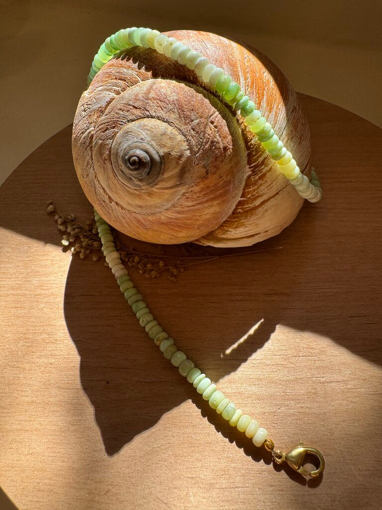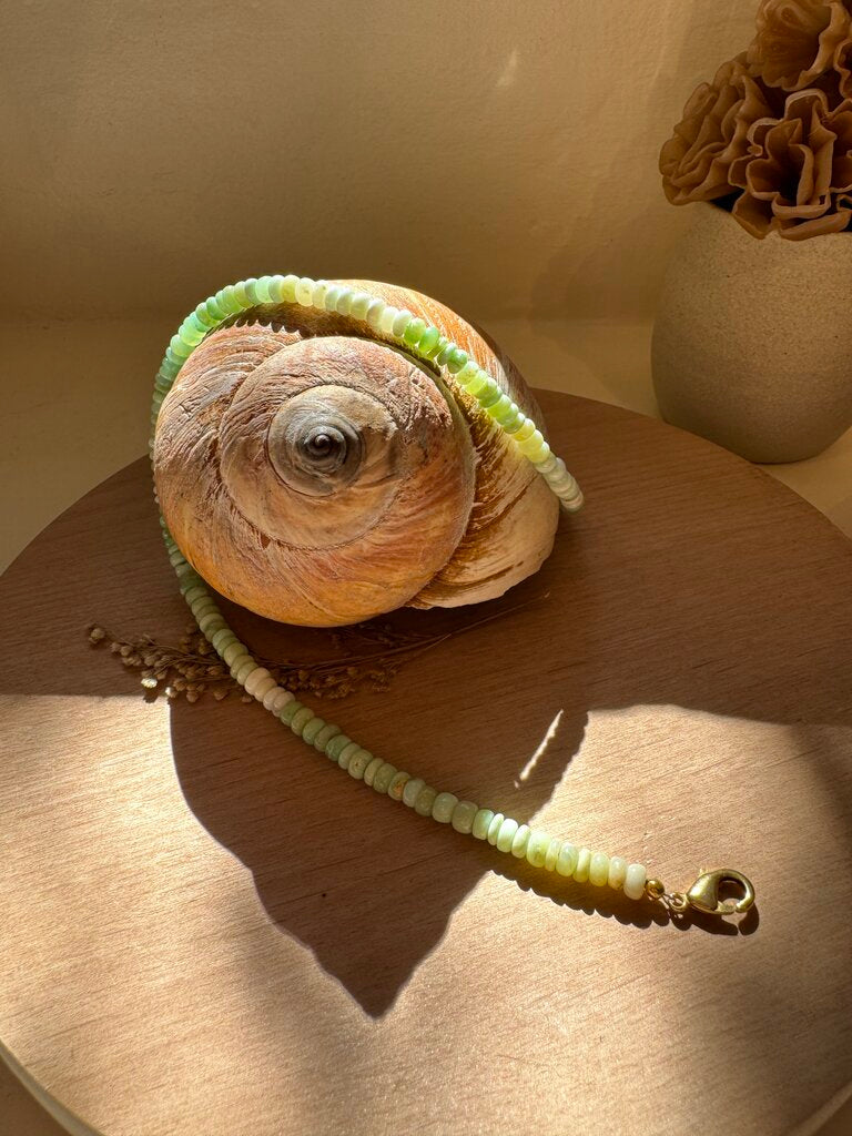 16" | Green Opal Semi-precious Gemstone strand necklace on extendable gold-plated clasp.
