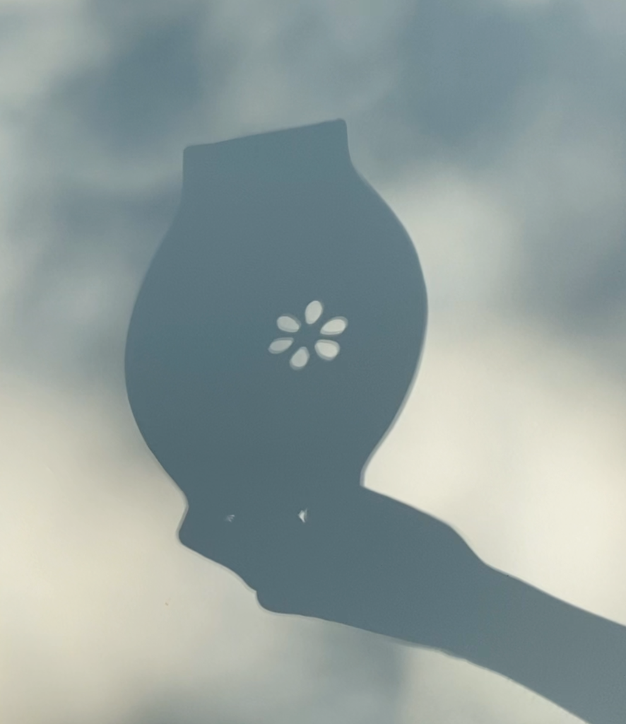 Handmade stoneware vase, glazed in a satin pistachio, with the cutest carved daisy cutout. Beautiful with fresh cut flowers and cast light.