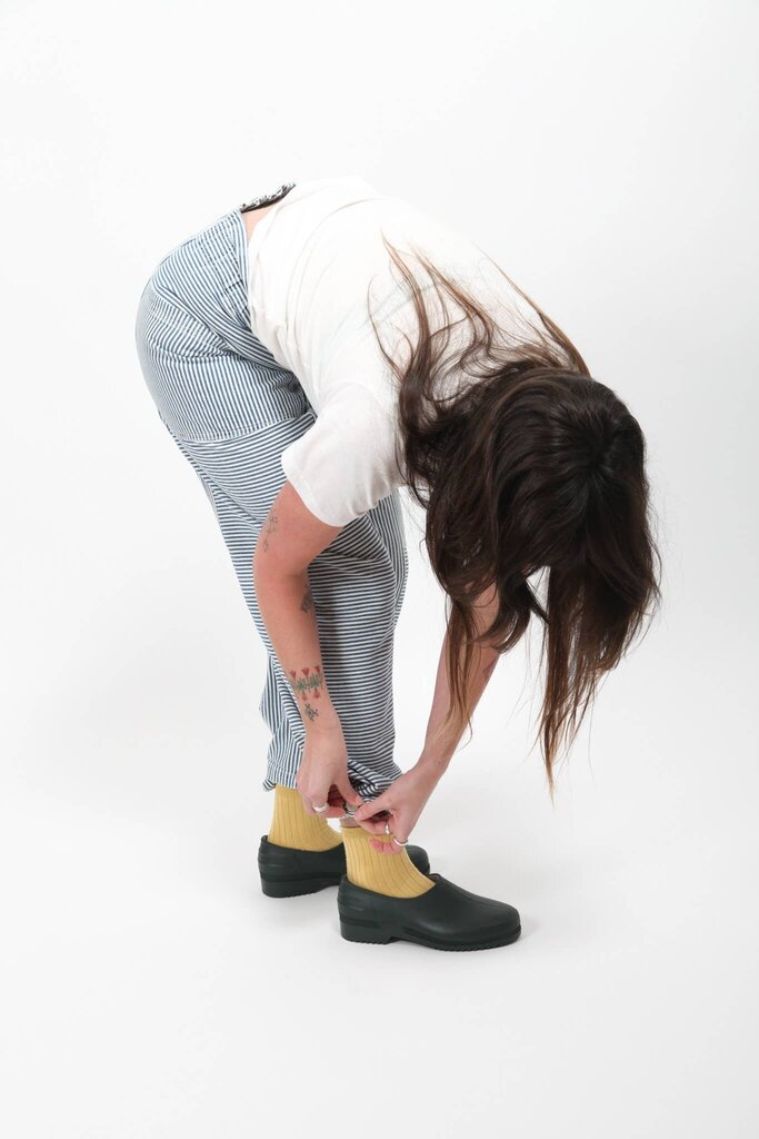 “We develop all of our styles in-house — Holly makes our patterns — and we design apparel that can be worn flexibly by bodies of different sizes, ages, and gender identities. Many of our styles are designed to be unisex.
